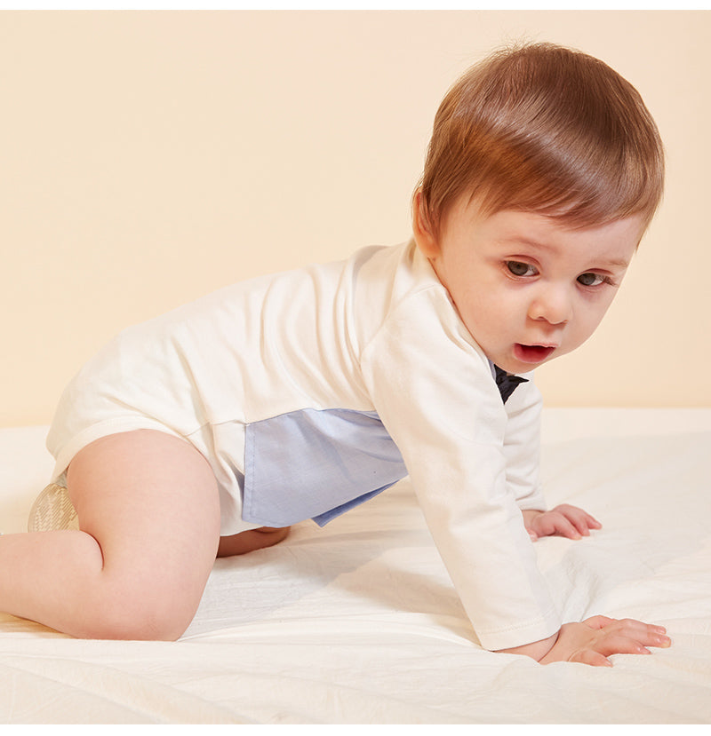 Snap at inseam for easy dressing and diapering